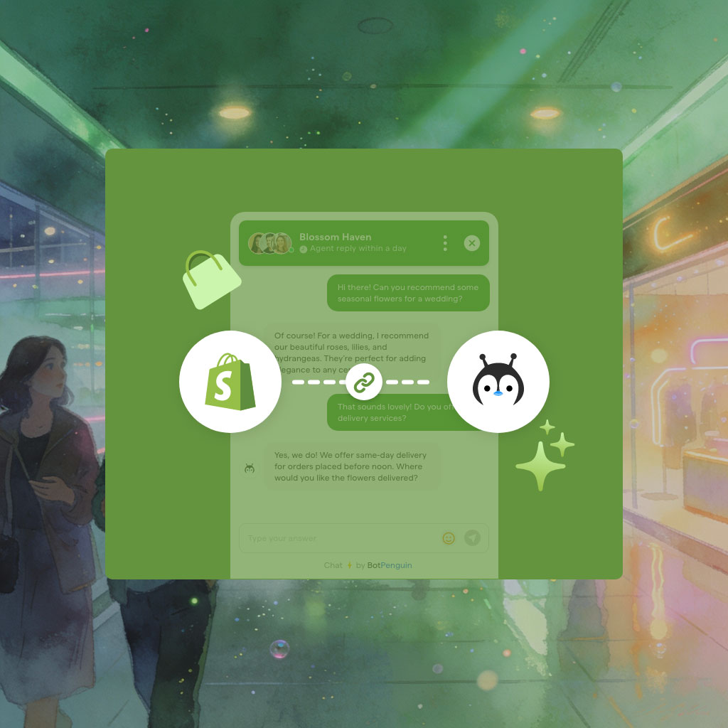 Give your Shopify store the power to sell, support, and automate—24/7. Boost conversions, recover carts, answer queries, and deliver personalized shopping experiences with an AI-driven Shopify chatbot built for growing eCommerce brands.